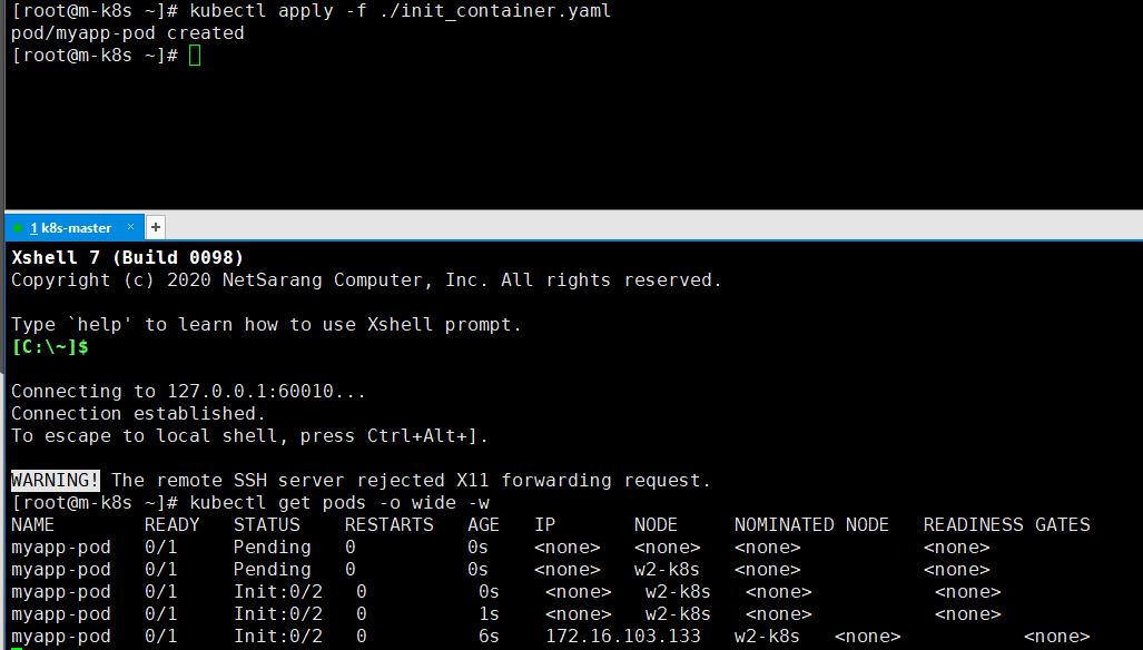 - Pod가 모두 준비되기 전에 실행한 후 종료되는 컨테이너이므로(실제 서비스를 위한 컨테이너가 아니므로)