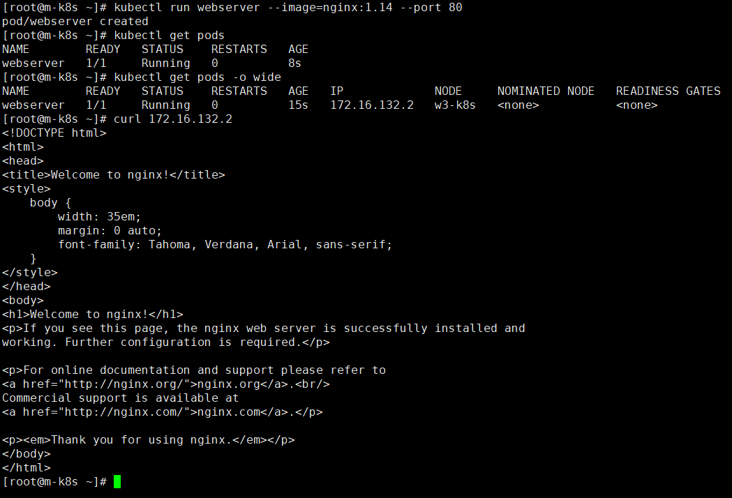 - # kubectl run webserver2 --image=nginx:1.14 --port 80