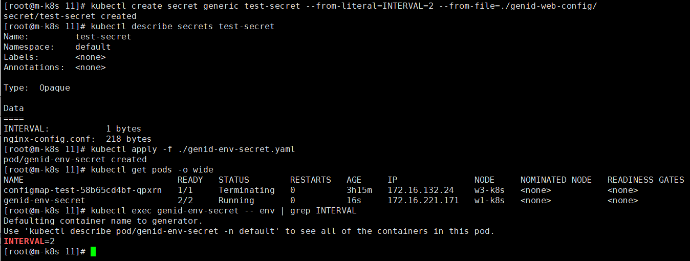 - # kubectl create secret generic test-secret --from-literal=INTERVAL=2 --from-file=./genid-web-config/